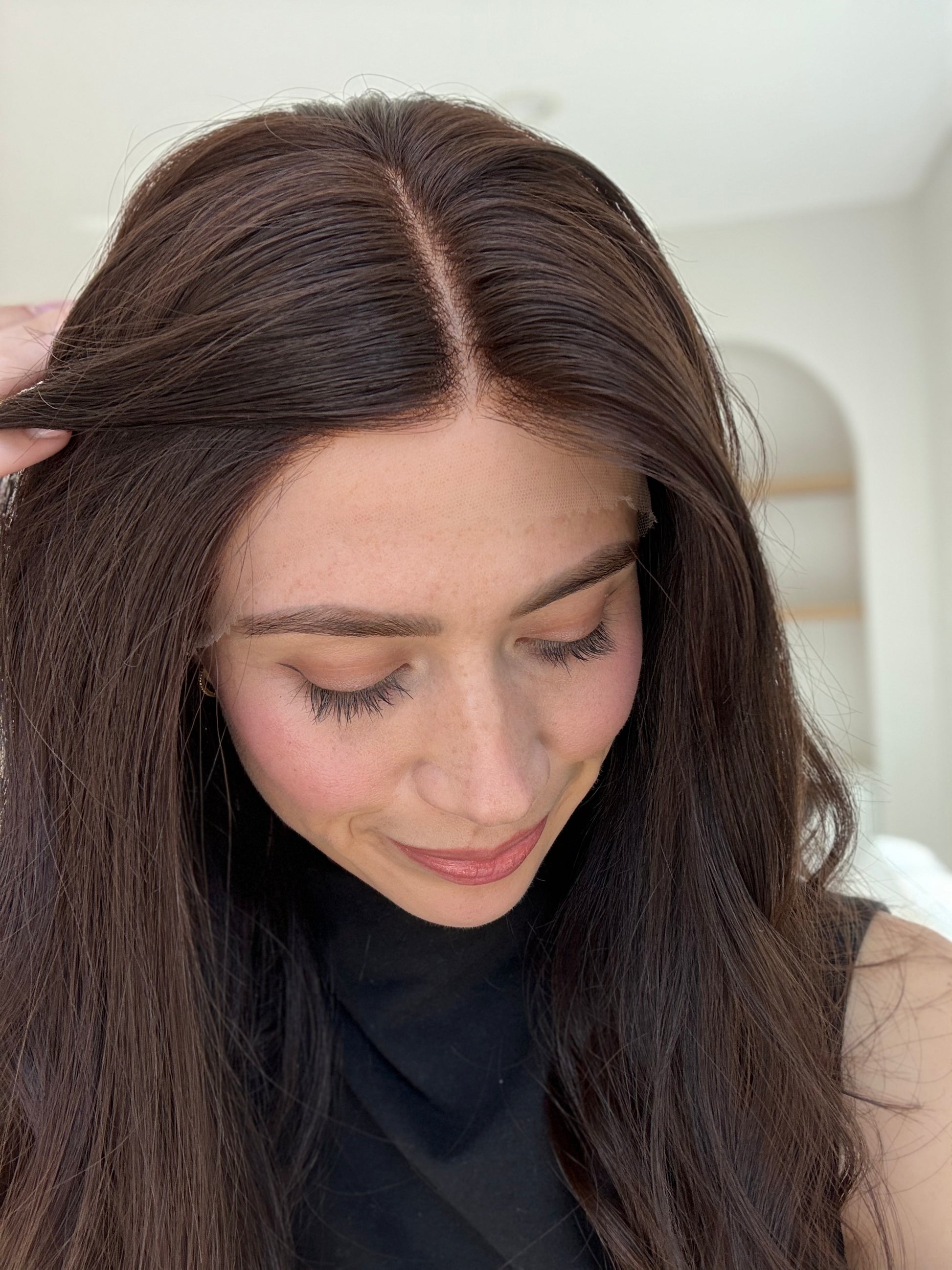Thriving is our darkest brunette glueless human hair wig. This rich, neutral dark brunette shade offers a sleek, polished look that feels effortless, versatile, and elevated.